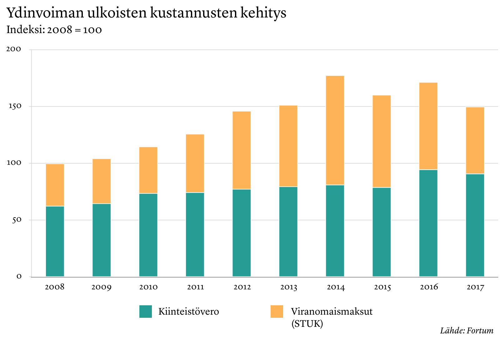 Kiinteistövero on heikentänyt myös ydinvoiman kustannuskilpailukykyä Suomessa. Se on kymmenessä vuodessa noussut 50 prosenttia. Sen lisäksi ydinvoiman kustannuksia ovat nostaneet säteilyturvaan liittyvät rasitteet, jotka harppasivat ylöspäin Fukushiman turman jälkeen. Kustannukset ovat jatkaneet nousua senkin jälkeen. Muun muassa VTT:n ydinturvallisuustalon rahoittivat käytännössä ydinvoimayhtiöt. Kymmenessä vuodessa säteilyturvakustannukset ovat kaksinkertaistuneet.