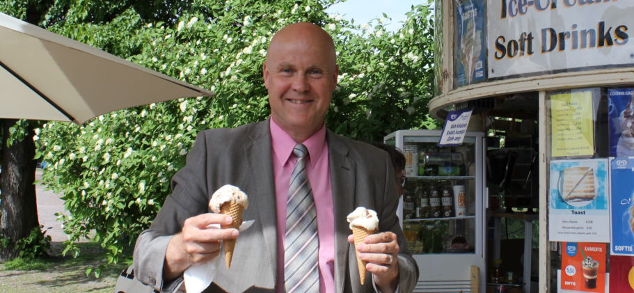 "Tykkään rommirusinasta", sanoi Antti Palola kun Kaisaniemen puistossa toimittajalle jätskit tarjosi. Kuva: MustRead