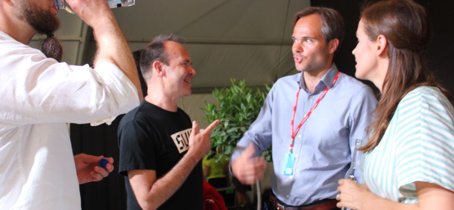 Tekoäly-aiheisen keskustelun jälkeen juttelua jatkoivat Peter Vesterbacka, sisäministeri Kai Mykkänen ja yrittäjä Maria Ritola Iris AIsta. Kuva: MustRead Kuva: MustRead